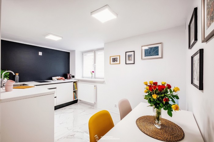 Nowoczesne mieszkania w wysokim standardzie, kuchnia z meblami i z AGD (w tym zmywarka), łazienka z WC. Dostępny jest parking oraz duży schowek (np. na rower).