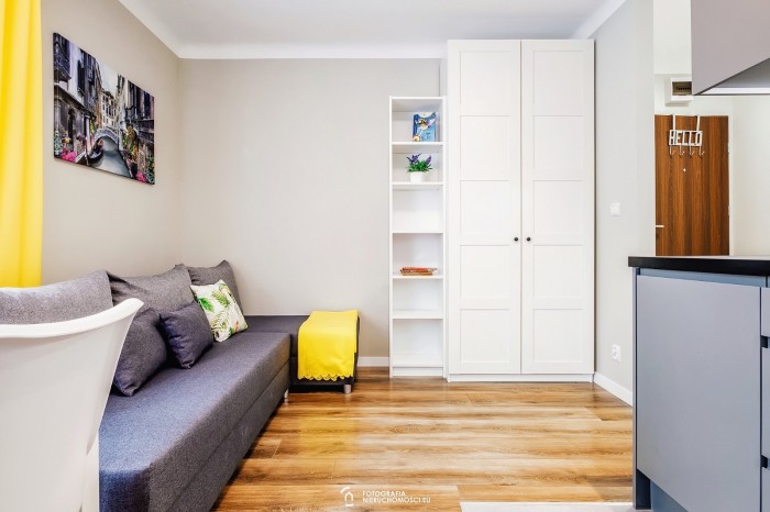 3 mieszkania typu studio składające się z saloniku z aneksem kuchennym, łazienki z WC i korytarza o metrażu 22 m2.
